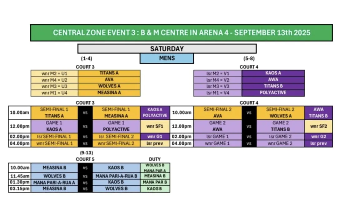 Central Zone League is the Volleyball New Zealand designated pathway for volleyball clubs in Taranaki, Whanganui, Manawatu, Hawkes Bay, Gisborne and Wellington regions to compete and qualify for VNZ Club Championships. The Central Zone League is intended to reflect the highest level of volleyball competition in the lower north island in preparation for the national championship in October.